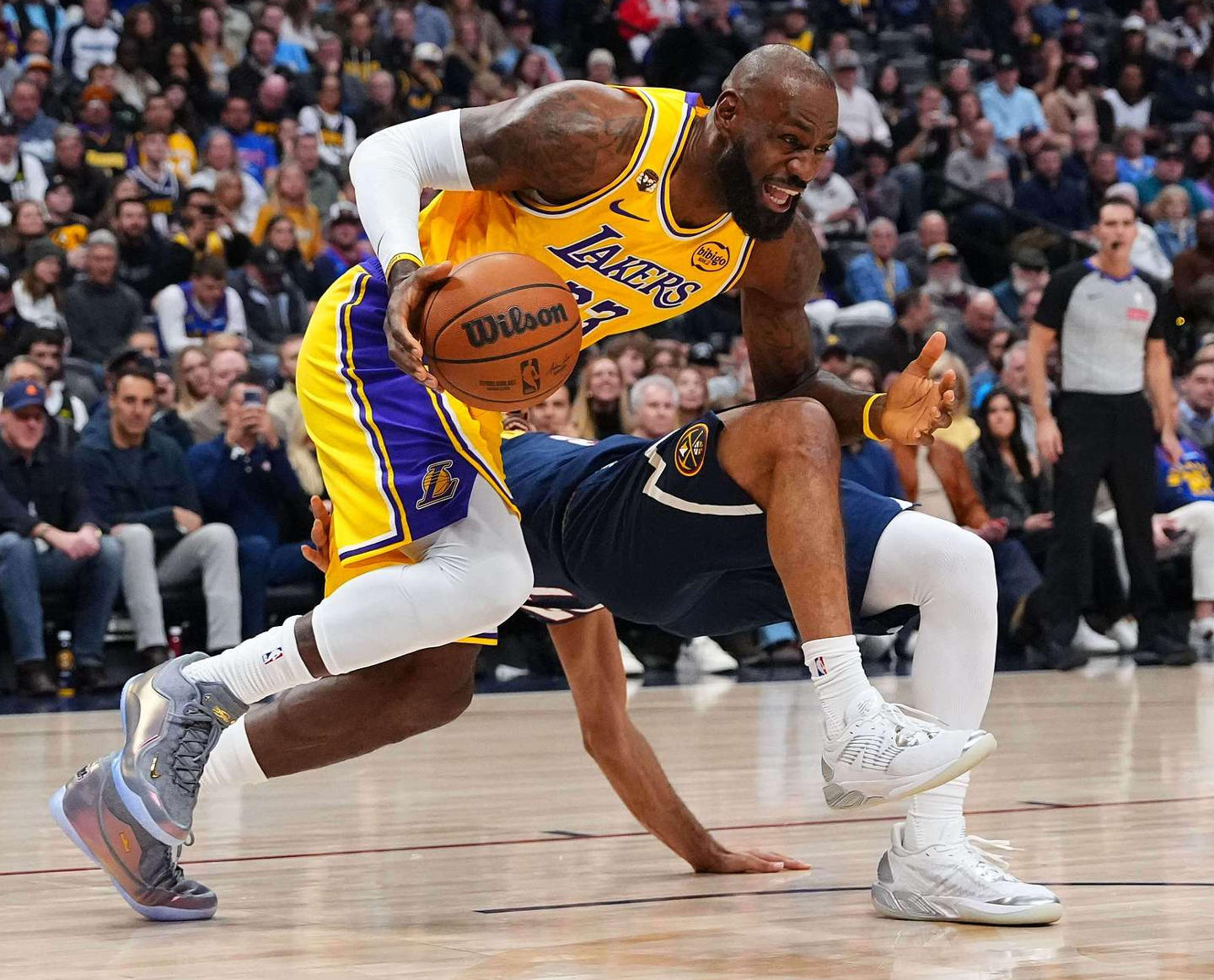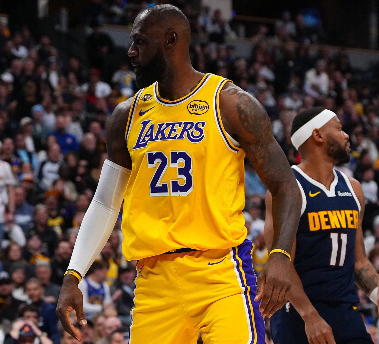 末节老詹两次出手未能命中,但他送了两个助攻湖人已经扳平分差,詹姆斯被换下后东契奇单核带队斯玛特连拿6分,詹姆斯还剩4分钟回归一个上篮打铁,随后篮下转身造犯规两罚一中,湖人前场失误送6分,老詹关键的平框暴扣,随后掘金犯规战术比赛走向完结。